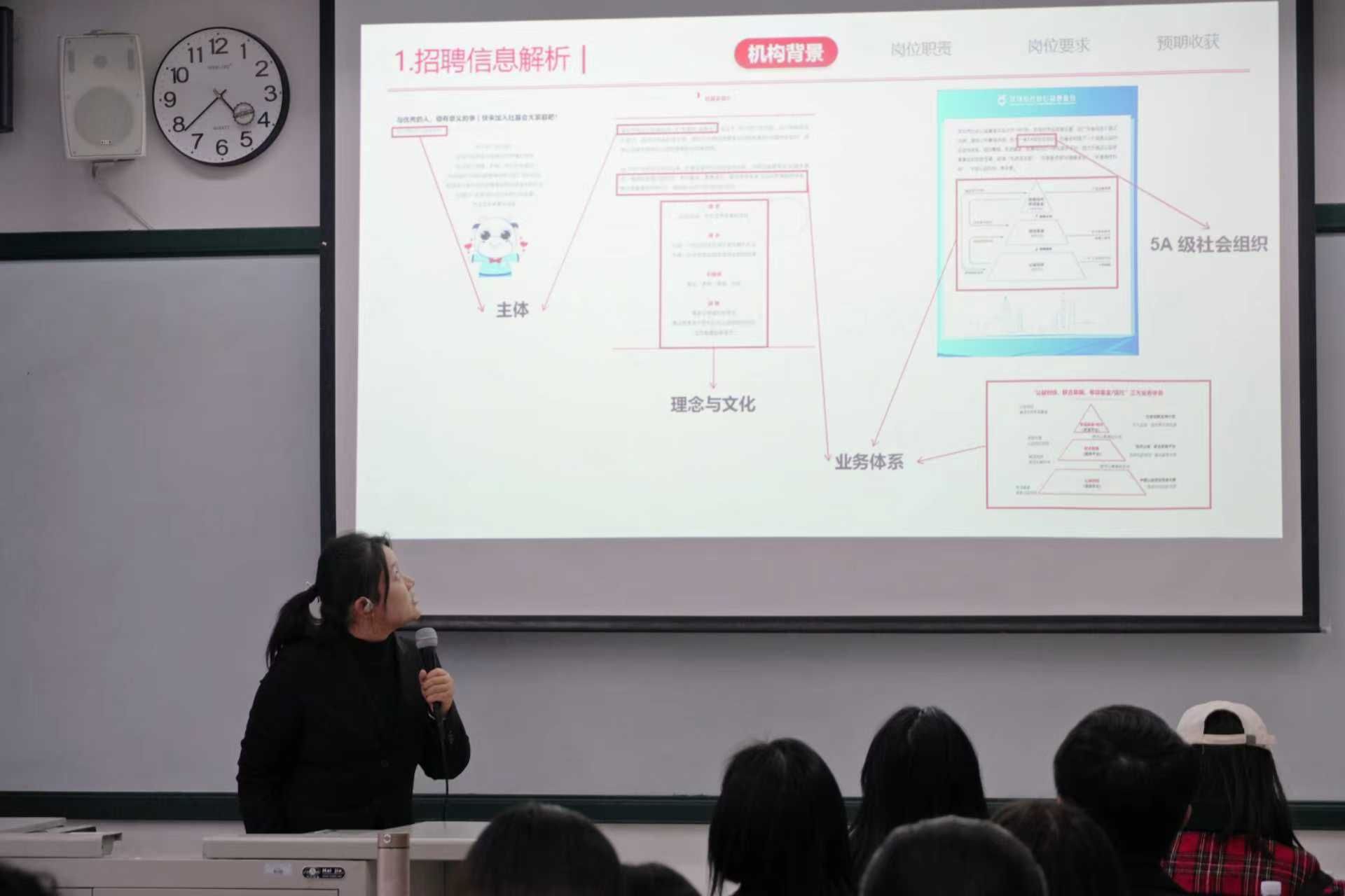 评委点评环节,专家针对简历制作逻辑、胜任力亮点呈现等方面给出了优化建议。蔡永捷先生引导同学们积极思考如何通过结构和版式更好地呈现内容并强调岗位分析的重要性。常晓波先生则提醒同学们在现场汇报和今后的面试中,都要学会在有限的时间内把最重要的信息讲清楚,突出个人亮点,做到内容精炼、有条理。两位评委鼓励同学们要把更多精力投入到平时的积累与成长上,专注于提升真实能力、积累扎实经历,这样在求职结果上自然会水到渠成。